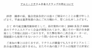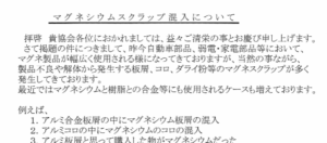 軽金属同友会よりマグネシウムスクラップ混入についてお知らせです。 PDF viewerより参照ください。