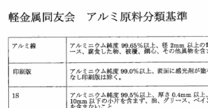 軽金属同友会のアルミ原料分類基準になります。 PDF viewerより参照ください。